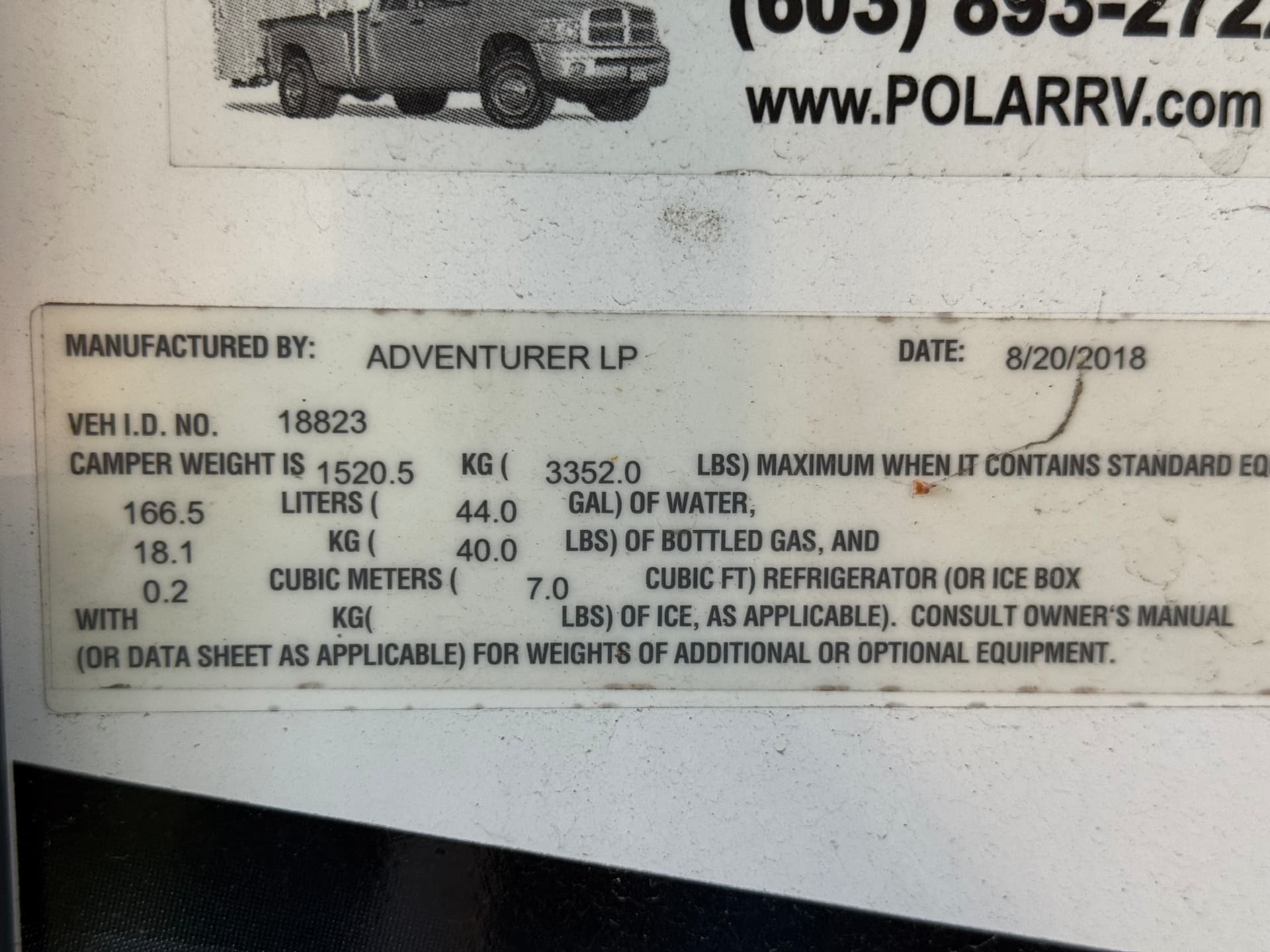 - So…. I bought a different setup and will be posting my 2019 Adventurer 910 db truck camper for sale as soon as I get it all in tip top shape. It has a built in Onan 2500 watt generator, full upgraded 200 ah self heating lithium lifepo blue tooth battery with 3 100w solar panels and a renogy 2000 watt inverter. Awesome truck camper but requires an 8 foot bed to use. It has large tank capacity’s and overall is awesome. I haven’t figured out a price yet for it but I think it’s valued in the low 30’s. For a club member I’ll do a better deal. If anybody’s truly interested, let me know.