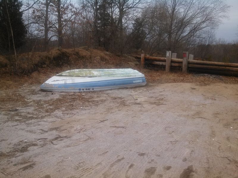 Tires. These are a couple hundred feet away from the boat. There are more than shown in the picture. Perhaps 15-20 total (and god knows how many if you start digging). They are right of the side of paved road but 15-20 feet down into a ditch and will probably need to be winched up.