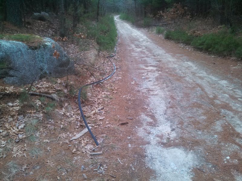 There are some downed powerlines that have been stripped of there copper. We will have to go in and cut up the casings and haul them to the dumpsters. The casings are along 2 access roads, one being New London Trnpk and the other at the end of Burnt Sawmill Rd.